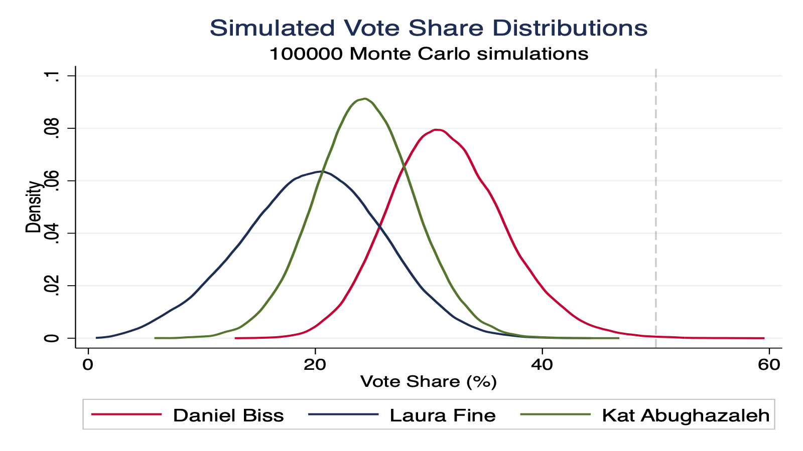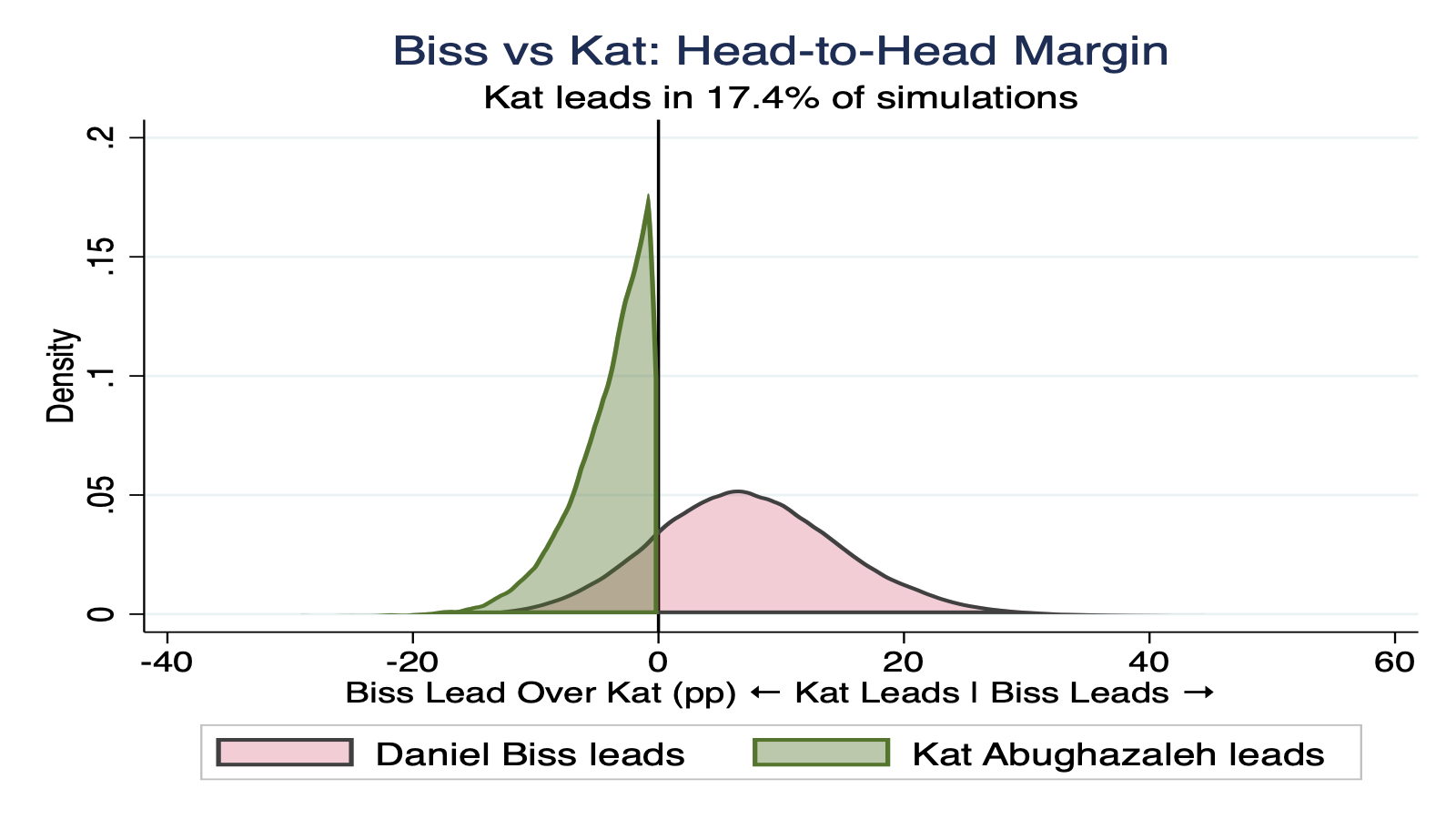 While Biss is clearly in the lead, the variance in this race is high. With a large undecided electorate and wide polling uncertainty, the outcome could swing significantly on election day. To be clear, this is not a cop-out -- the model genuinely reflects a race with massive uncertainty baked in.
