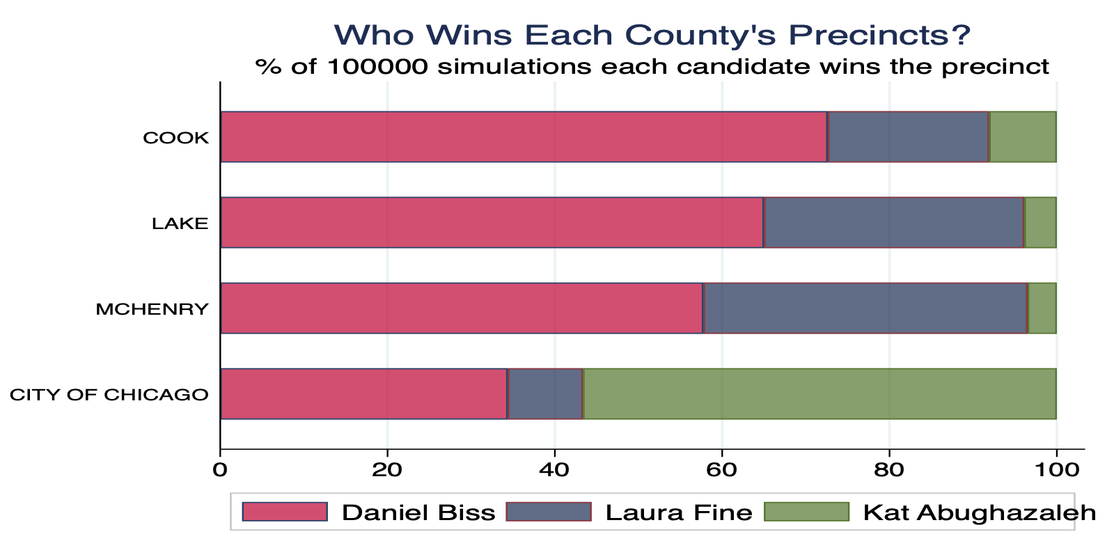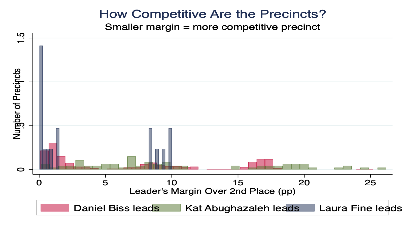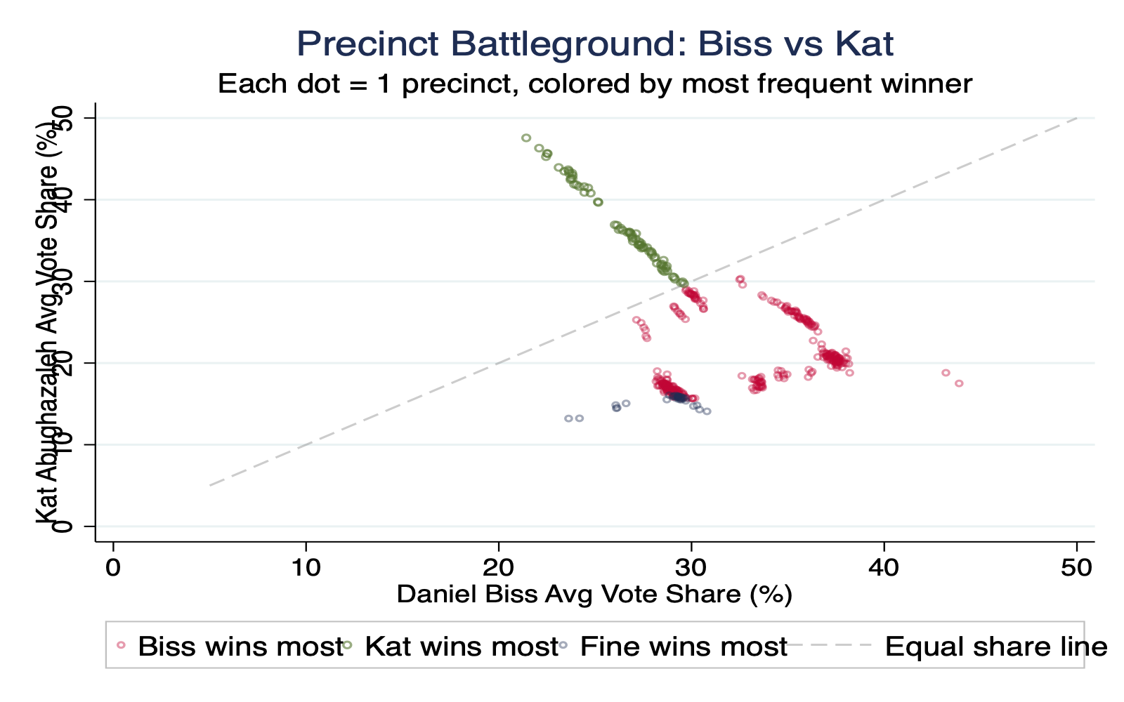 | Precinct | Winner | Runner-Up | Margin | Biss Win % | Fine Win % | Abu. Win % |