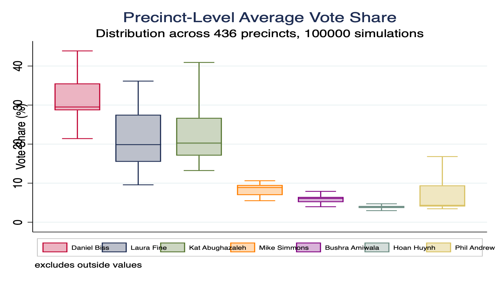 | Precinct | Winner | Margin | Runner-Up | Biss % | Fine % | Abu. % | Sim. % | And. % | Ami. % | Huy. % | Biss Win | Fine Win | Abu. Win | '24 Dem | '24 Total |